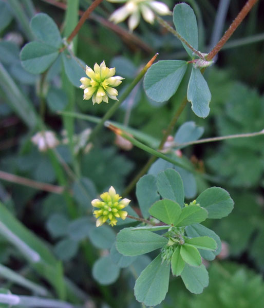 Lesser trefoil spreads by creeping runners and seed, it anchors itself into the soil with a deep tap root, which enables it to withstand drought conditions. It is often confused with black medic, as the leaves and flowers have a very similar appearance (the leaf tips of black medic are sometimes pointed, where lesser trefoil are not).
