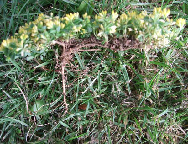 - Roots: Lesser trefoil has a deep penetrating taproot (see image below).